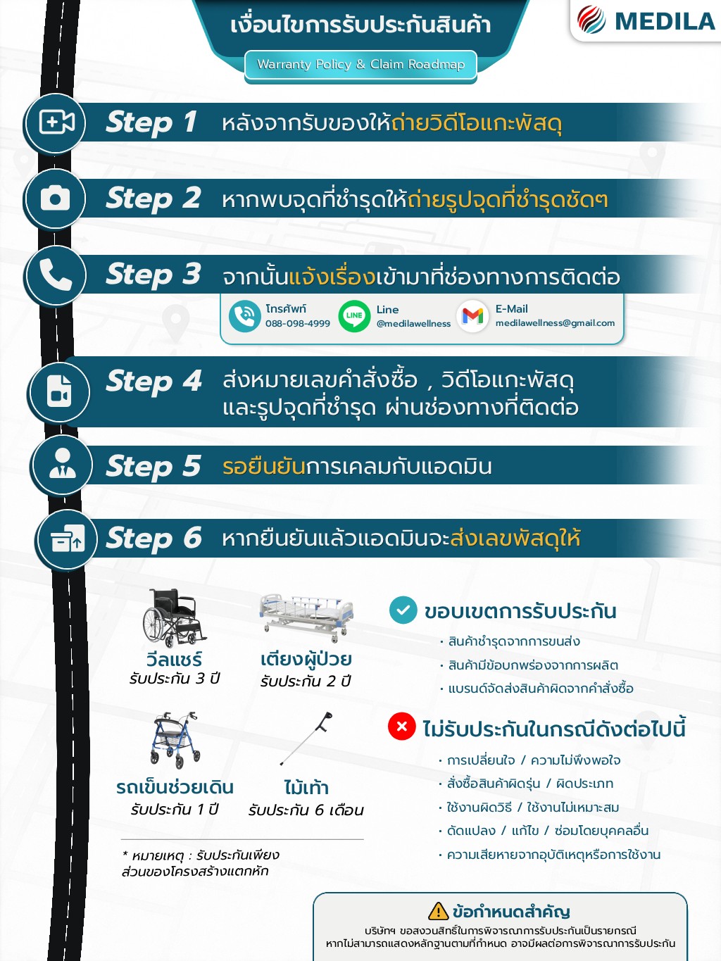 - รถเข็นช่วยเดิน: รับประกัน 1 ปี